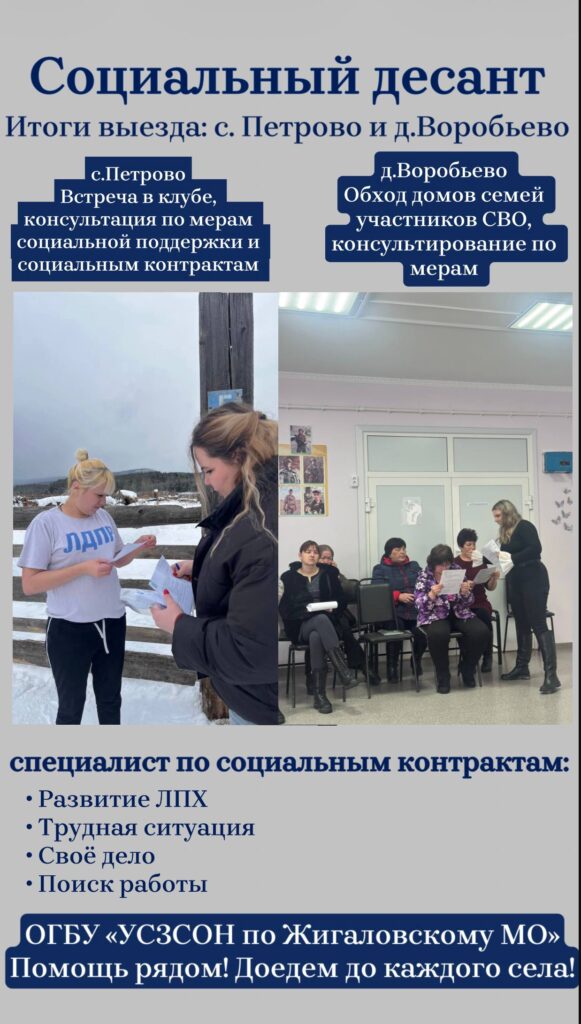 Мобильная группа ОГБУ «УСЗСОН по Жигаловскому муниципальному округу» продолжает серию выездов в отдаленные территории. На этот раз специалисты посетили с. Петрово и д. Воробьево.